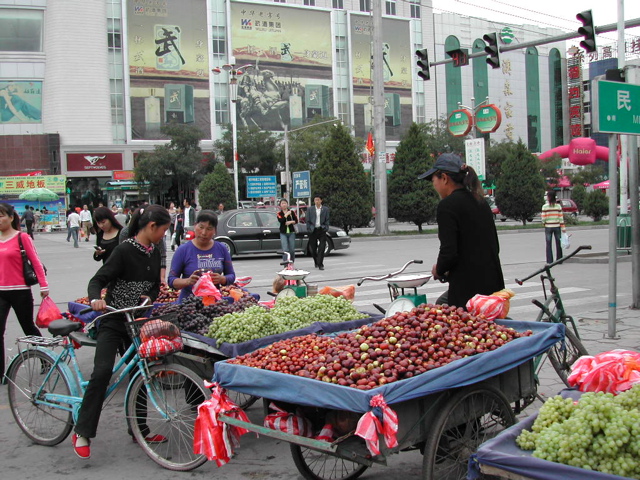 | 武威で泊まった天馬賓館の正面 | ホテルの前には果物を売る屋台が出ている | 食事は西域の地方料理が多くなる | 到着した日の午後は市内観光 先ずは文廟から |