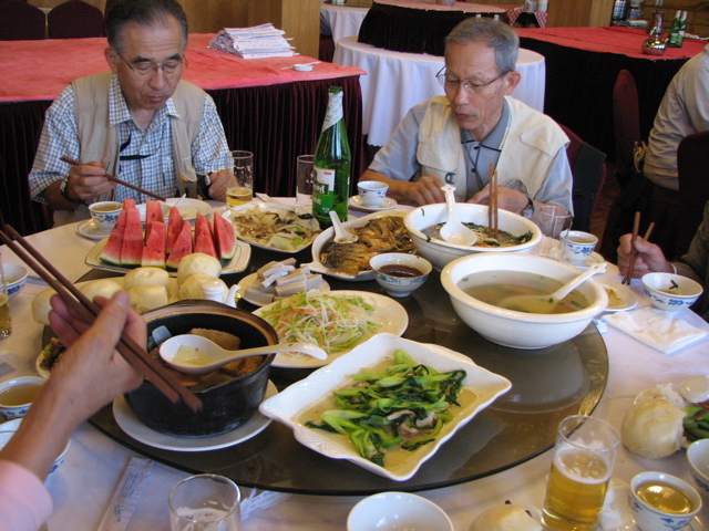 植樹の前夜、天馬賓館にて武威市政府関係者8名を交えて晩餐会を開いた。ボランティア参加者と北海道からの視察団も加わり、最後は皆で北国の春を歌って盛り上がった。