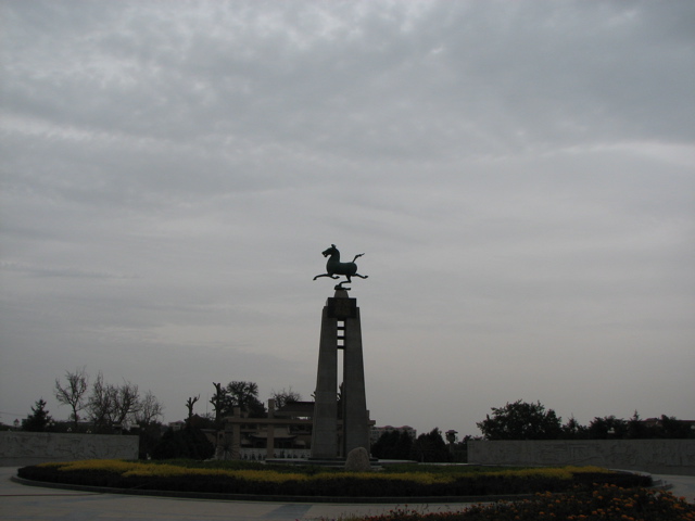 | 文革で中が壊されたが1990年代に復元されている文廟 | 博物館では国宝の西夏石碑を見る | 銅奔馬をシンボルにする雷台漢墓 | 元は刑務所の中にあったと言うが現在は周囲が整備されつつある羅什塔 |