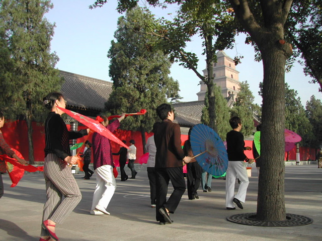 翌朝は快晴。ホテルに隣接した大雁塔の見える公園では中国の人々が早朝から体操に興じていた。武威での植樹に先立って、西安を観光した。