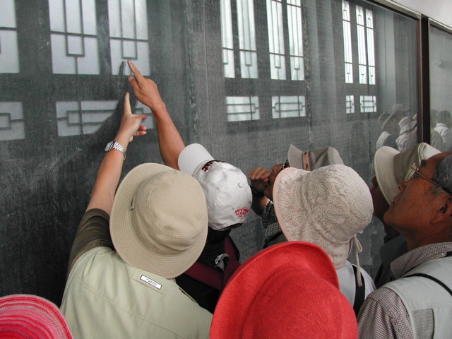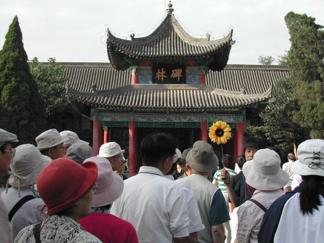 | 碑林博物館入り口で | 碑林博物館は宗代の孔子廟をそのまま利用している。 | 拓本を採り、商売している。 | ここに平成の文字があります。 |