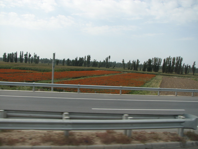 張掖は昔、甘州と言われたオアシスの町です。武威を出て3時間もすると、ゴビ灘の中に緑の林が見えてきます。近づくと一面に柳の林になっていて、トウモロコシやひまわり、マリーゴールドの畑があります。水は豊かで、昔マルコポーロも一年間滞在した記録があります。