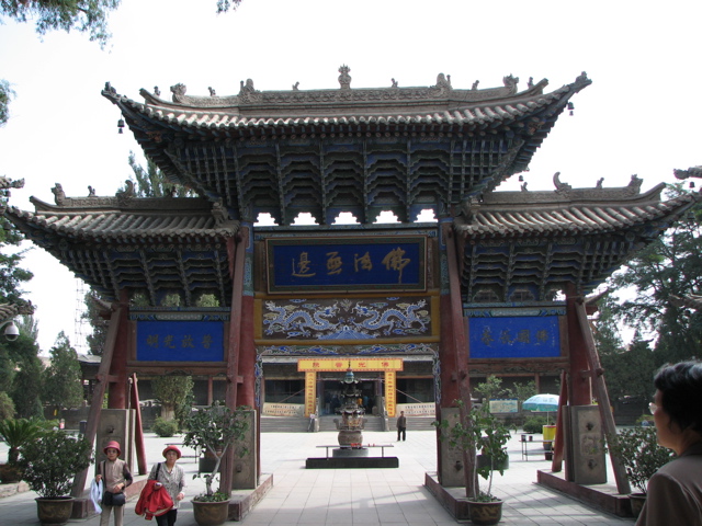 臥仏寺(がぶつじ)とも言い、甘粛省最大の仏教寺院です。1098年西夏の頃の創建。臥仏殿に横たわる涅槃像は長さ34m、耳の長さは2m、足は4mもあります。修復工事中で全体が足場の中に入っていました。宝物殿も見せてもらいました。