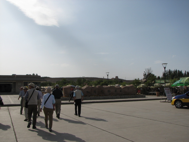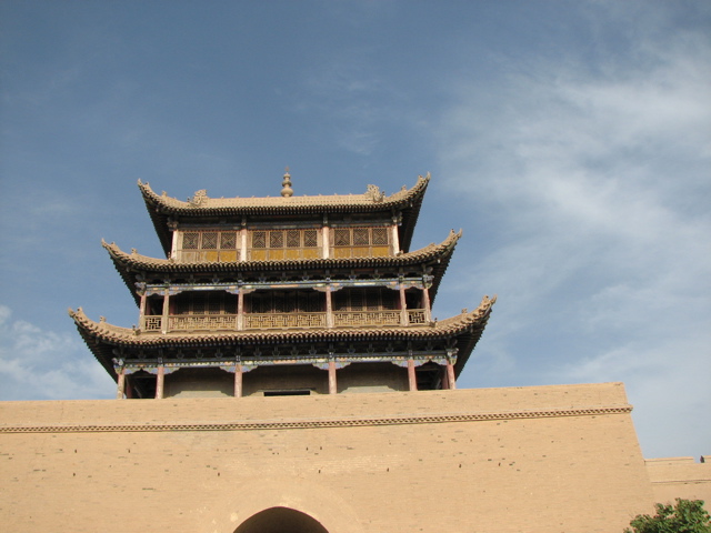 酒泉を出て約1時間で嘉峪関に着いた。武威から500km、8時間の予定で朝8時前に出発したが、張掖、酒泉を経由し、嘉峪関に着いたのは午後5時頃だった。渤海湾を望む山海関に端を発し、西に続く万里の長城の西の端が嘉峪関。その間6000km.中国里で1万里。沙漠にそびえる3層の城楼は南方の吐蕃(チベット族)の侵入を防ぐために明代(1372年)に建てられた。当時は400人の兵士が常駐したという。海抜1700mで河西回廊では一番高所に位置する。予定外であったが砦内を見学した。