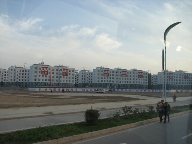 嘉峪関は年間降水量80mmほどの沙漠地帯だが、祁連山脈からの雪解け水が豊富で、現在では鉄鋼コンビナートが立てられ、人口も急激に膨張している。沙漠の中にこつ然と建設された高層アパートは異様な光景だった。夜になるとたまたま中央からお役人も来ているとのことで、ホテルの近くの公園で獅子舞や竜踊りが夜遅くまで演じられていた。